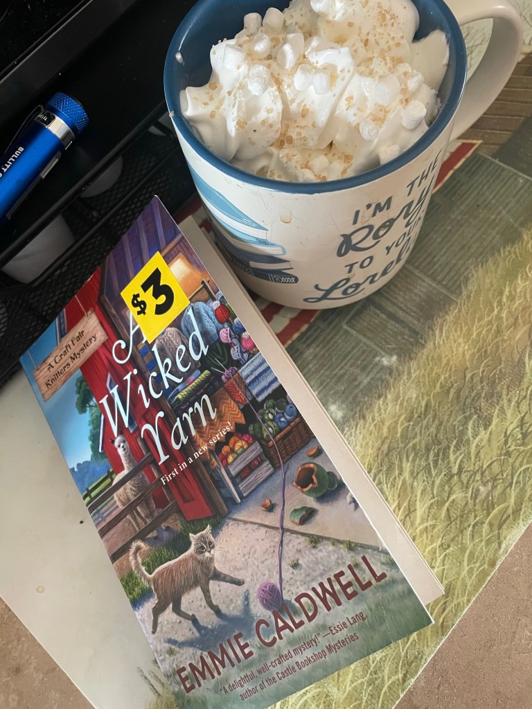 I can’t knit or crochet worth a hoot but sure do enjoy reading cozy mysteries centered around those hobbies. We are settling in nicely this round of cozy mystery book bingo. Week 2 was a cozy with a cat on the cover. Perfect opportunity to start this 3 book series and read a book off my own bookshelf.